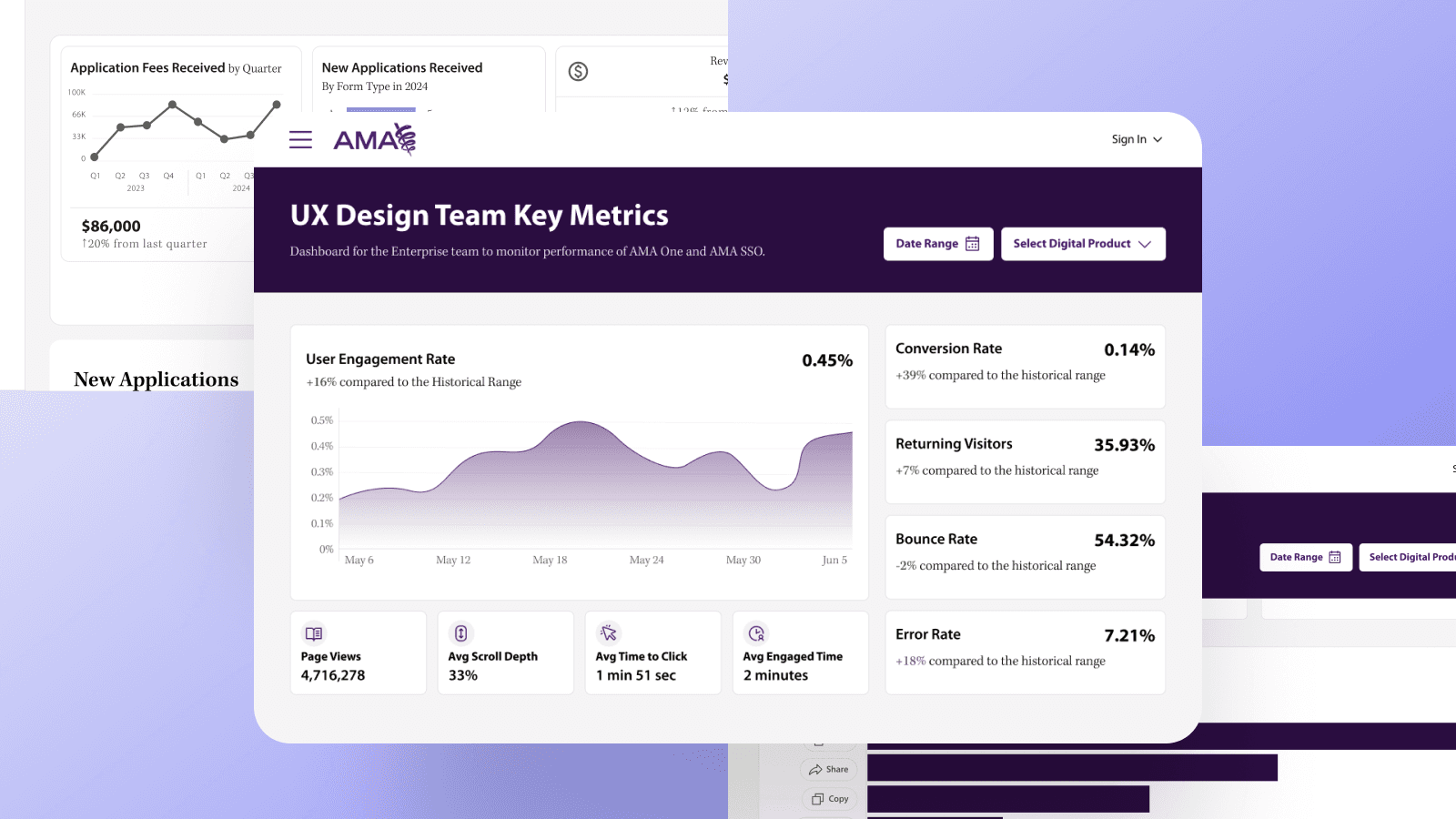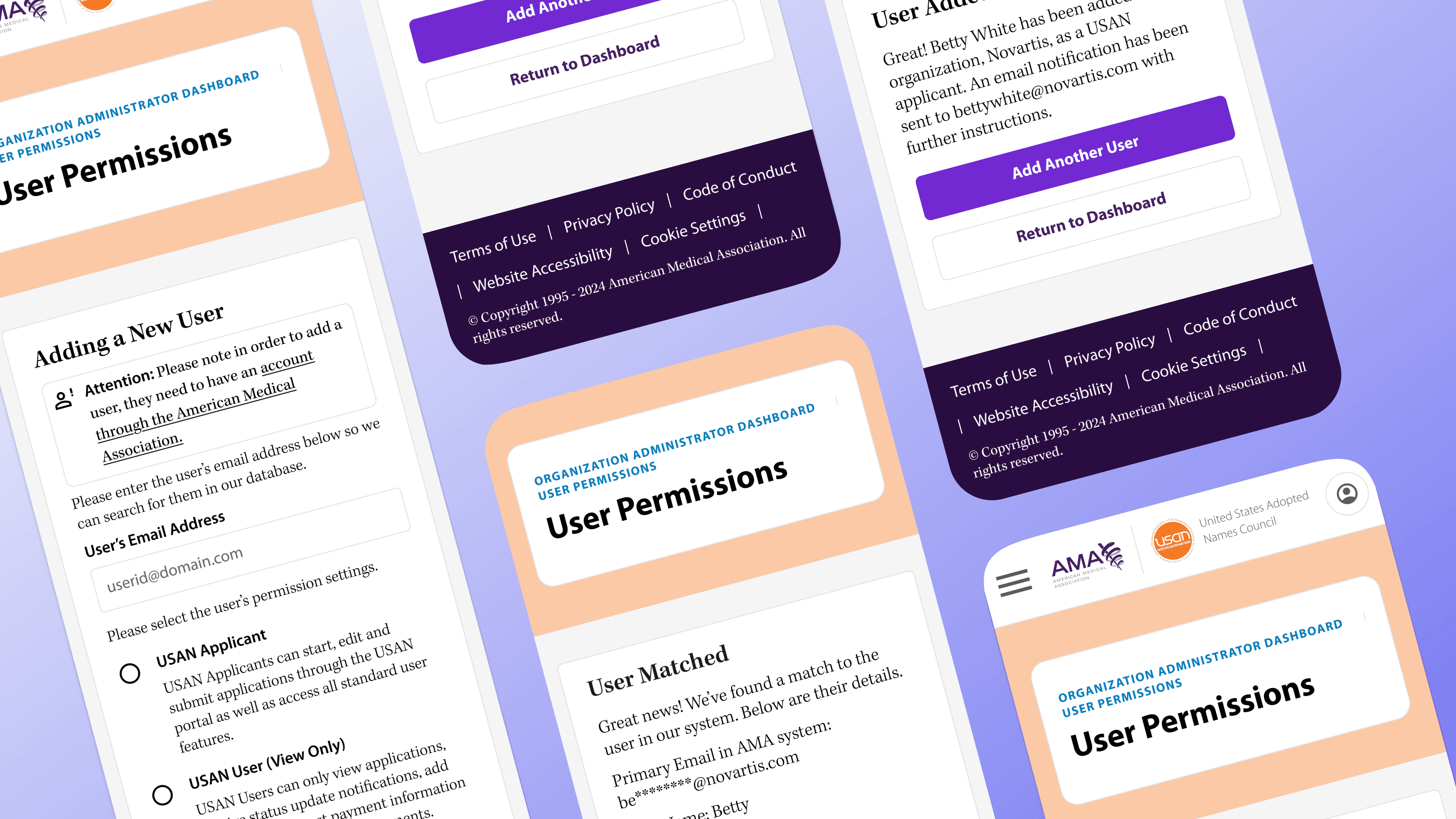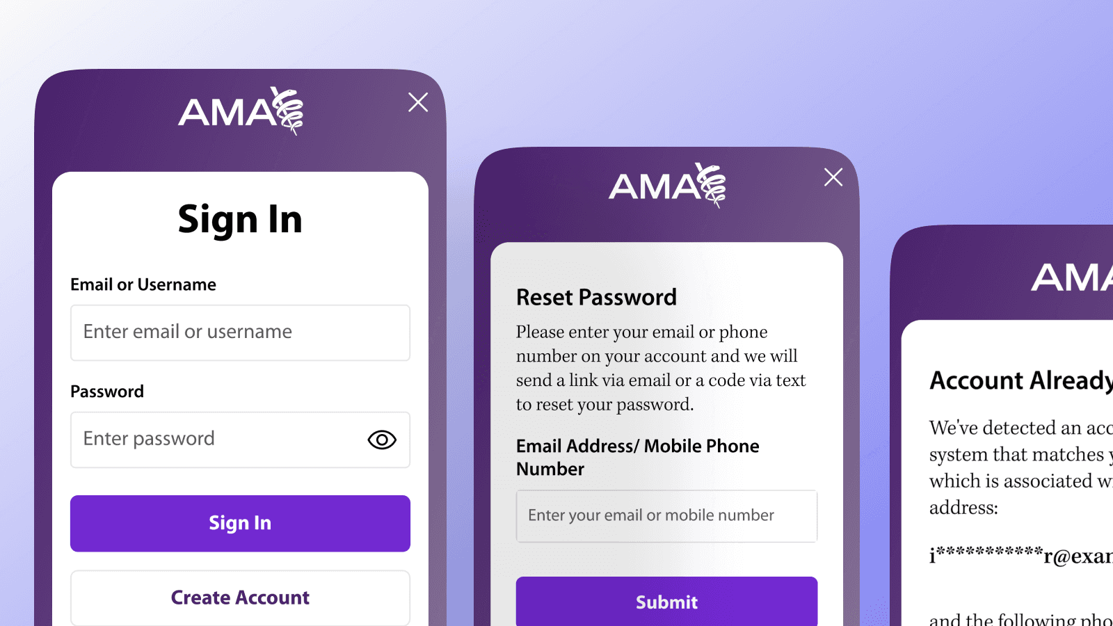 Worked on the flows for duplicate accounts for the American Medical Association's single- sign-on experience. Brought the visual design up to date with our design system.