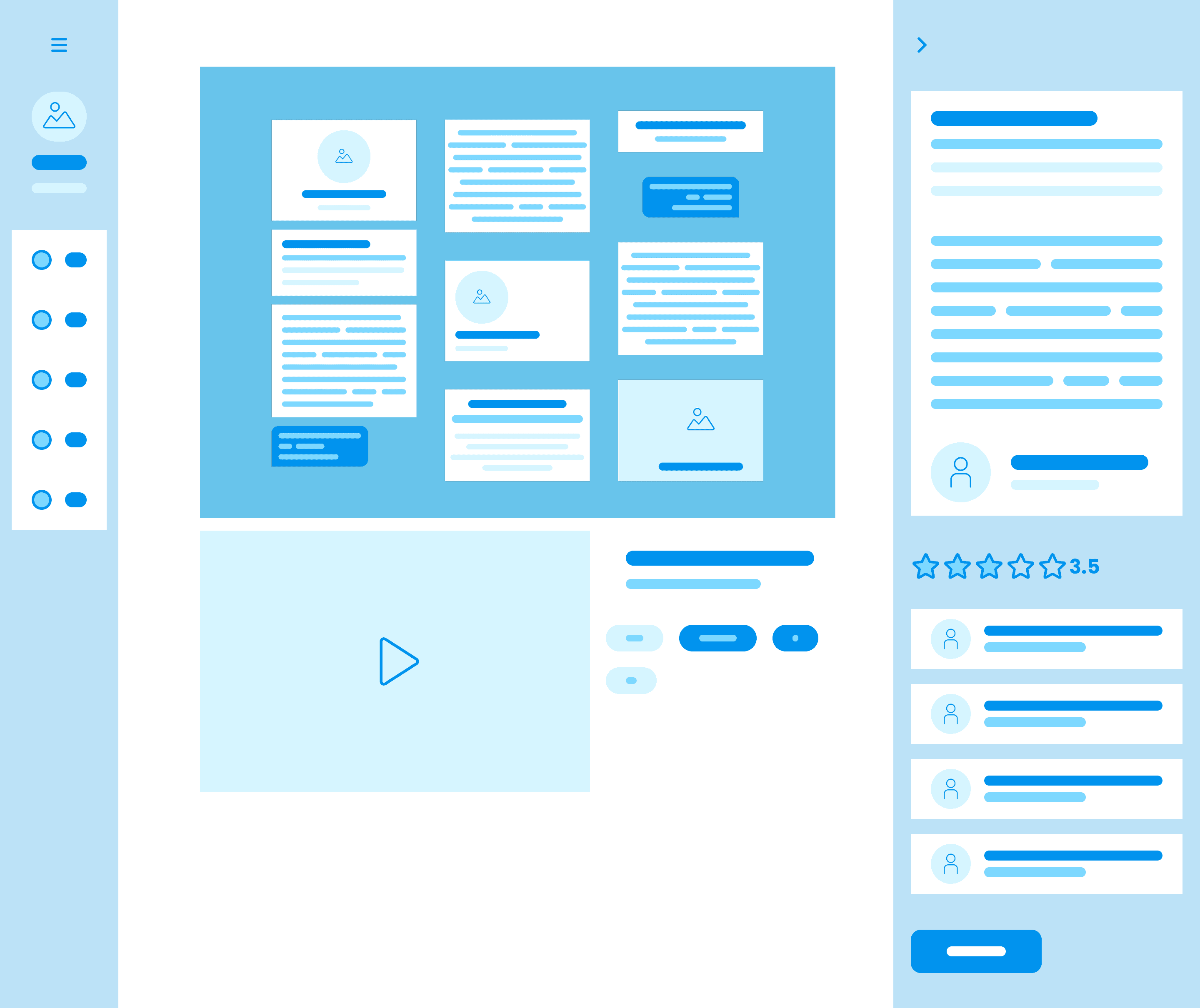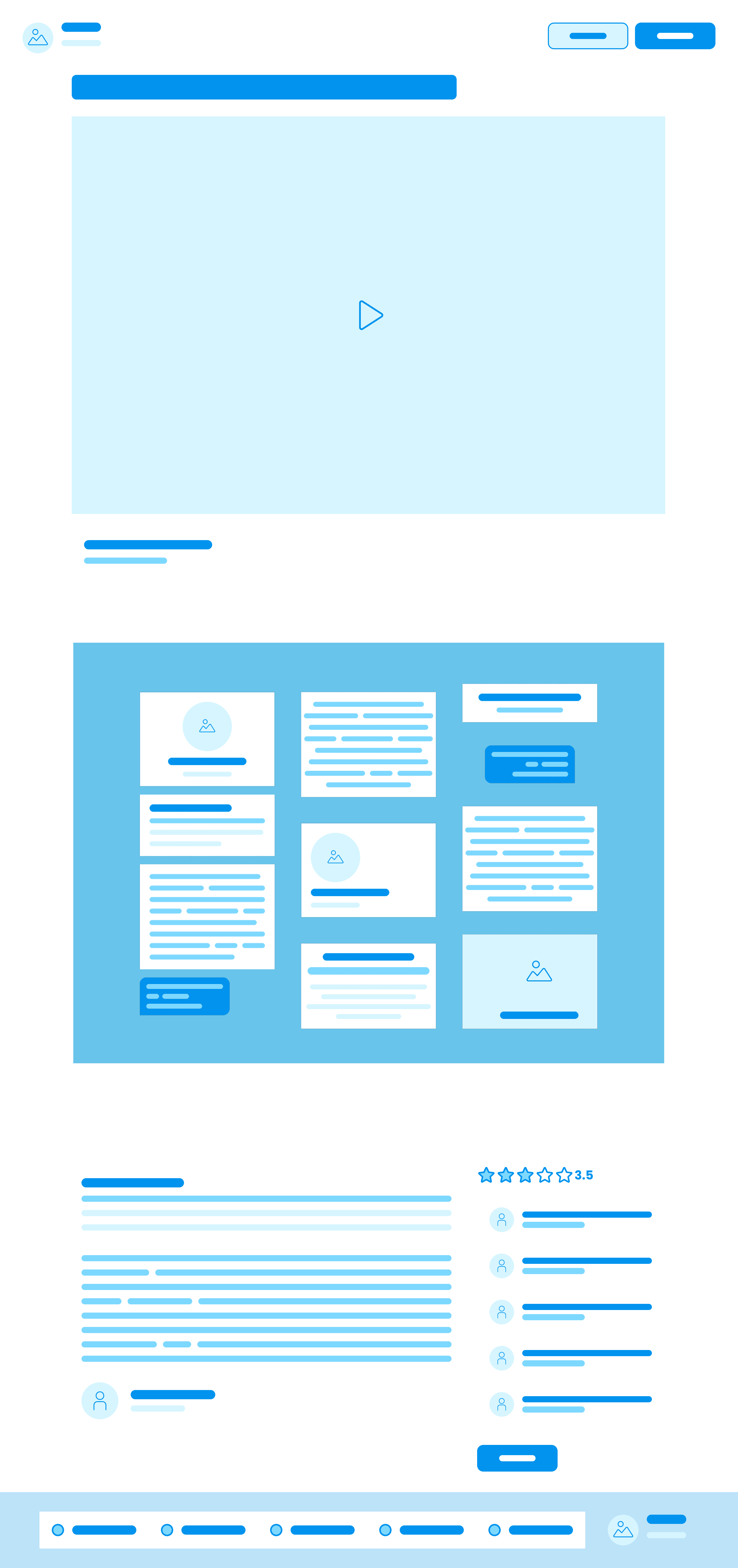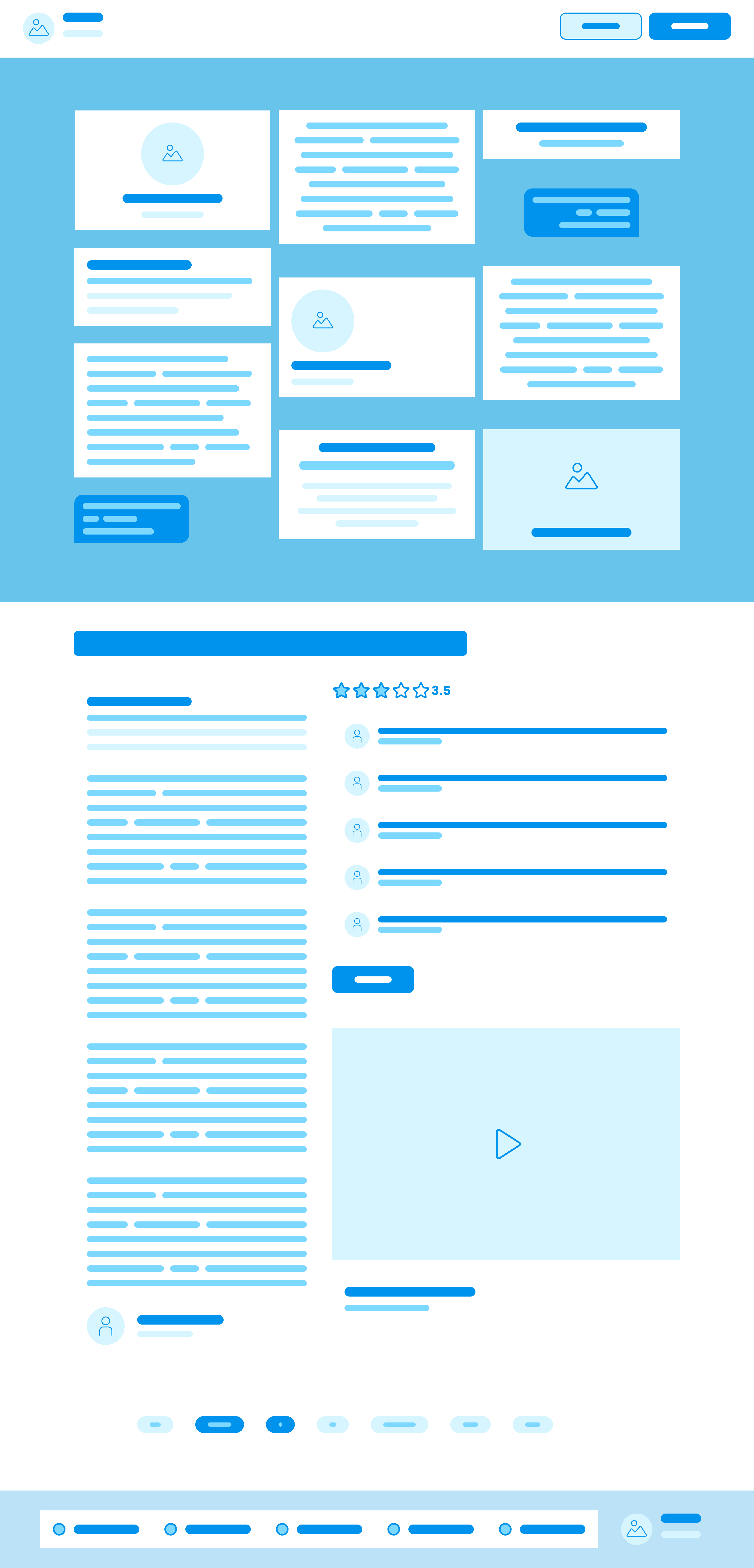 To get an idea of the layout of the pages I worked on lo-fi wireframes of the overall page templates first. For the layout I took inspiration from the current platform as well as sites that focus on display of visuals, such as dribbble and awwards. From there I was able to extrapolate the specific components I would need to create to make the entire vision come together. I used the Bloo UI Kit to quickly create the lo-fi frames.