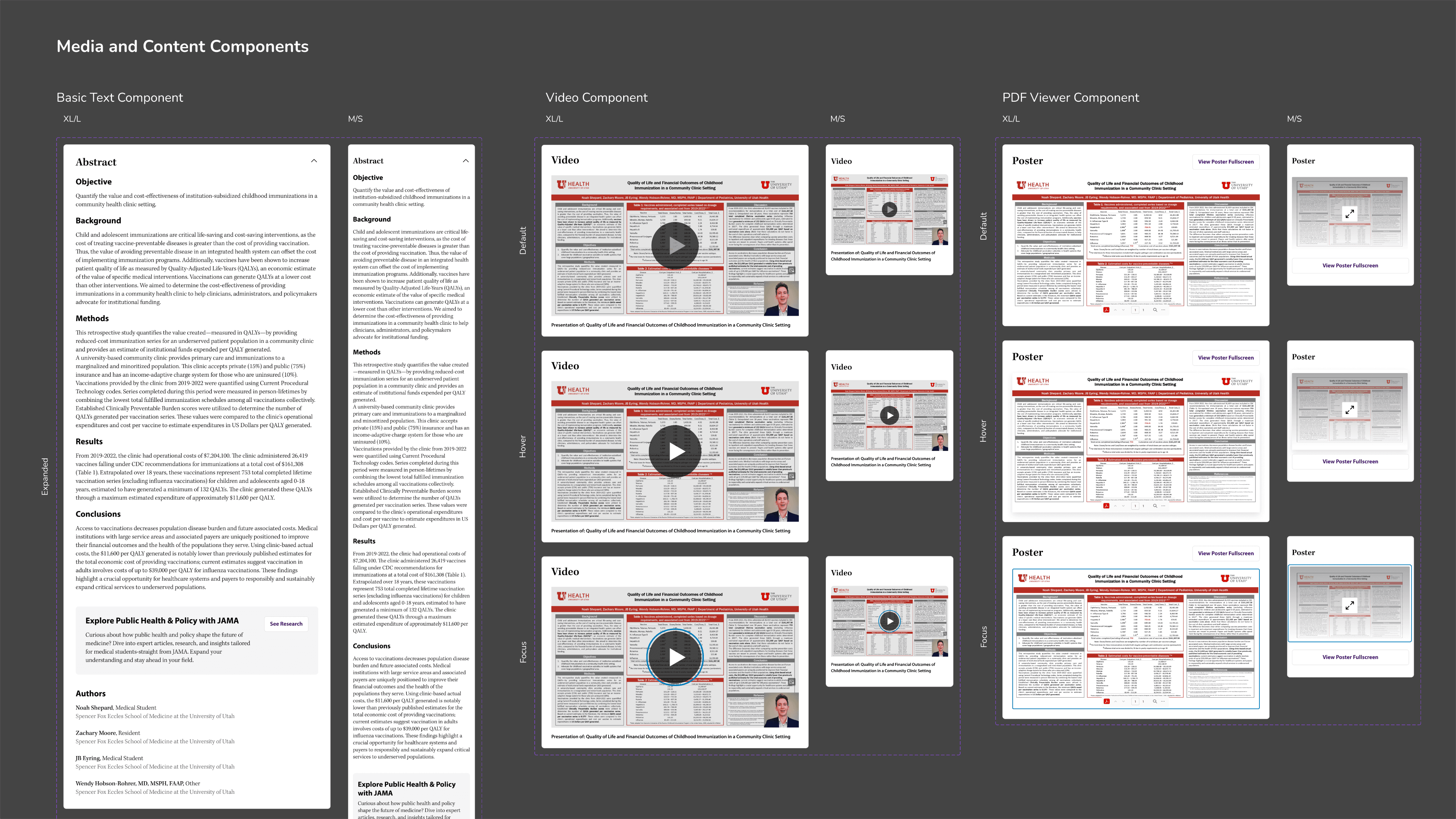 A container hosted by Adobe that we could embed into each of the pages. This would give the students the opportunity to upload their posters via pdf format. The embed allowed users to zoom into posters and move around the posters so they could view it form all angles. I reformatted the embed so it matched our design system.