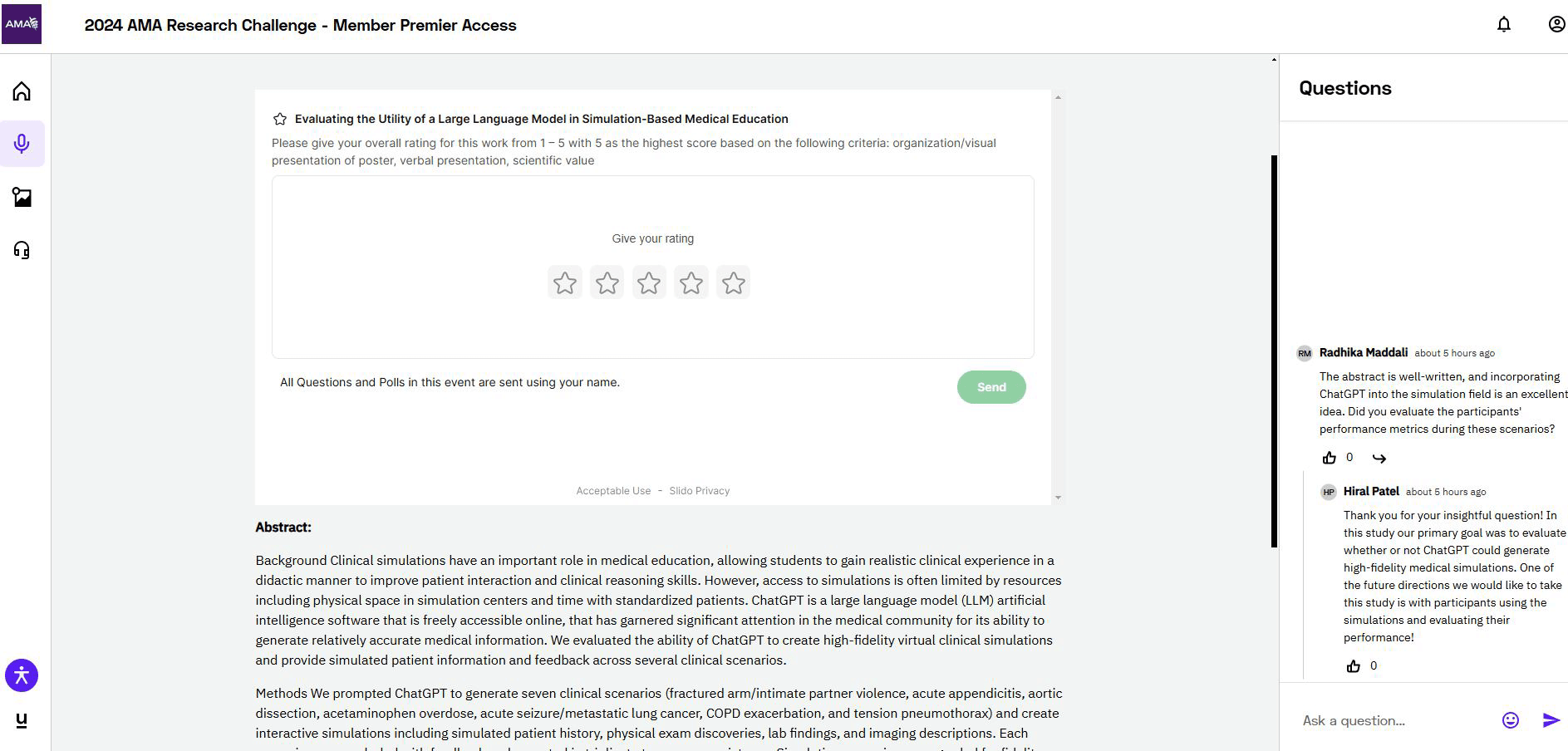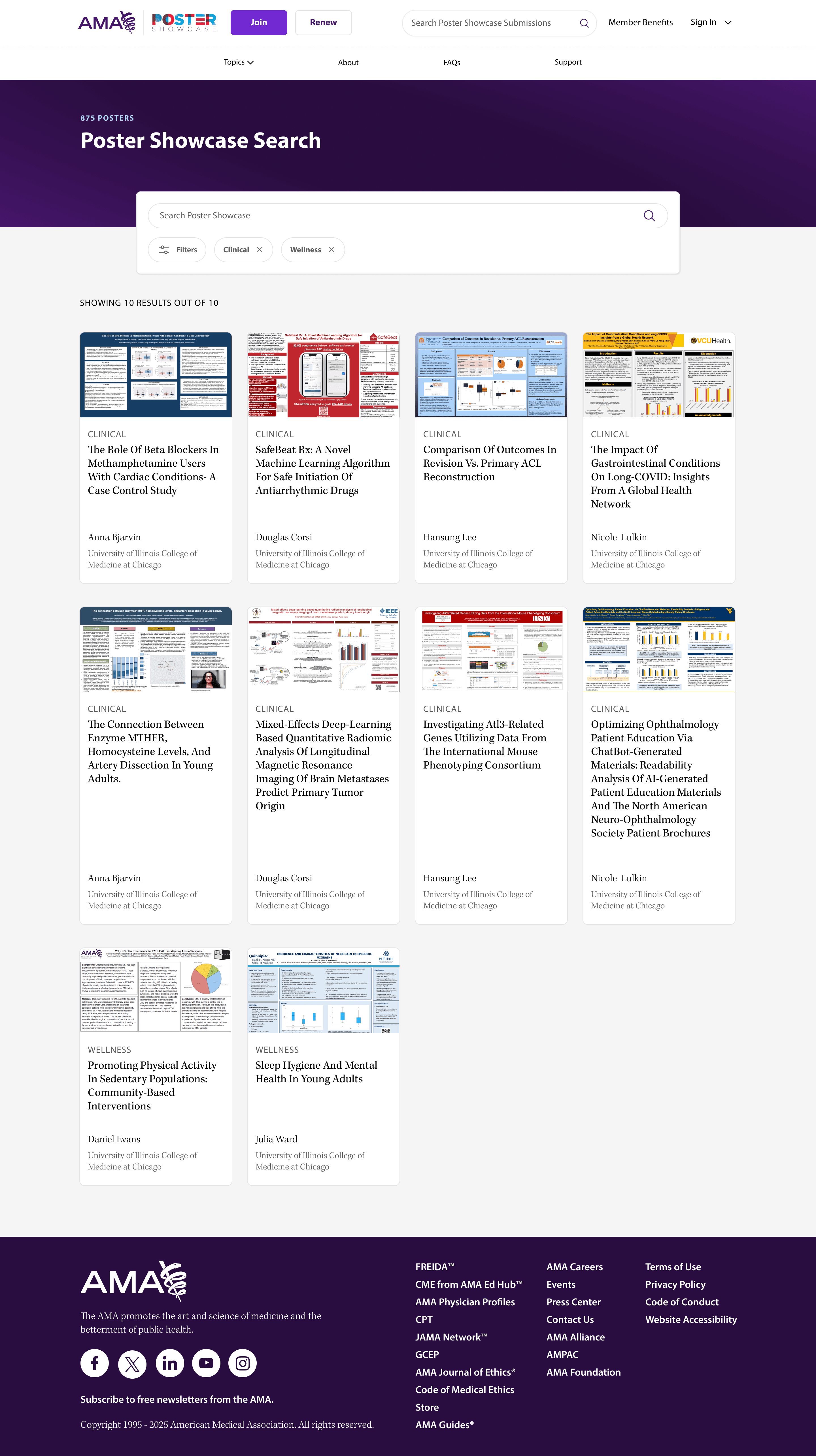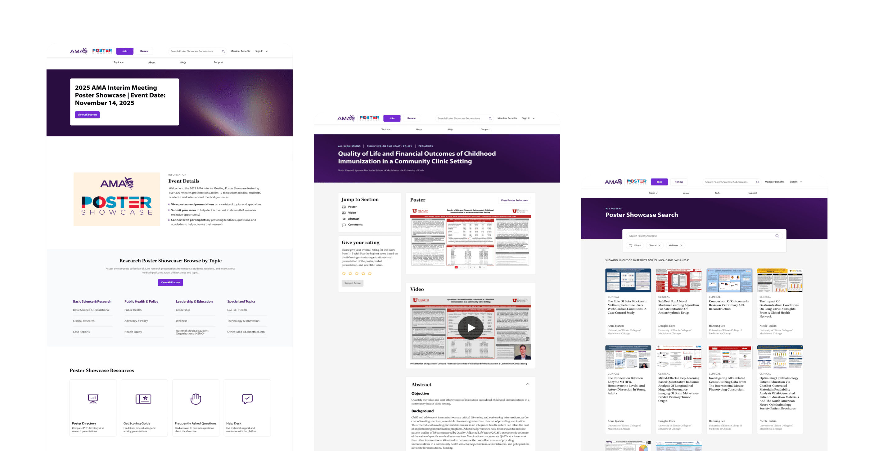 The AMA hosts two events twice per year, (1) a research challenge & poster symposium, and (2) a poster showcase. During these events medical students compete for a cash prize, by conducting research projects. The medical student outreach team, in charge of the contests, requested our team find a way to replace the platform they were using for both events, Underline.io. The outreach team had a few issues with it, their biggest issue being that the main focus of the tool showcased the written abstract over the student’s posters.