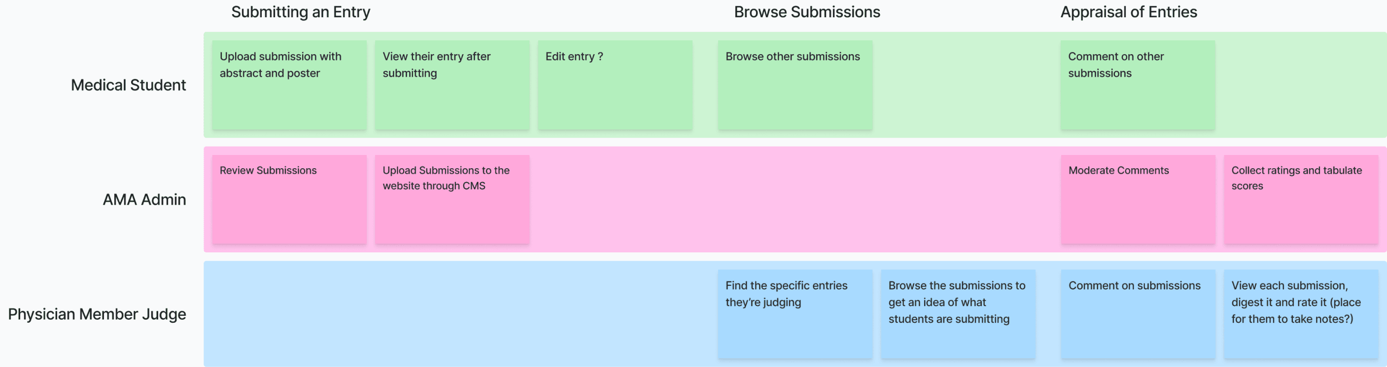 We were looking to design a platform that allows students and residents to post their work, for judges to rate their work and for people to comment on their work. Commenting and rating were brand new functionality we added to our existing experience. We also had to back up adding these new features to the enterprise experience by coming up with different use cases.